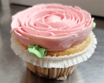 Nun die Rosen mit Blättern auf die abgekühlten Cupcakes